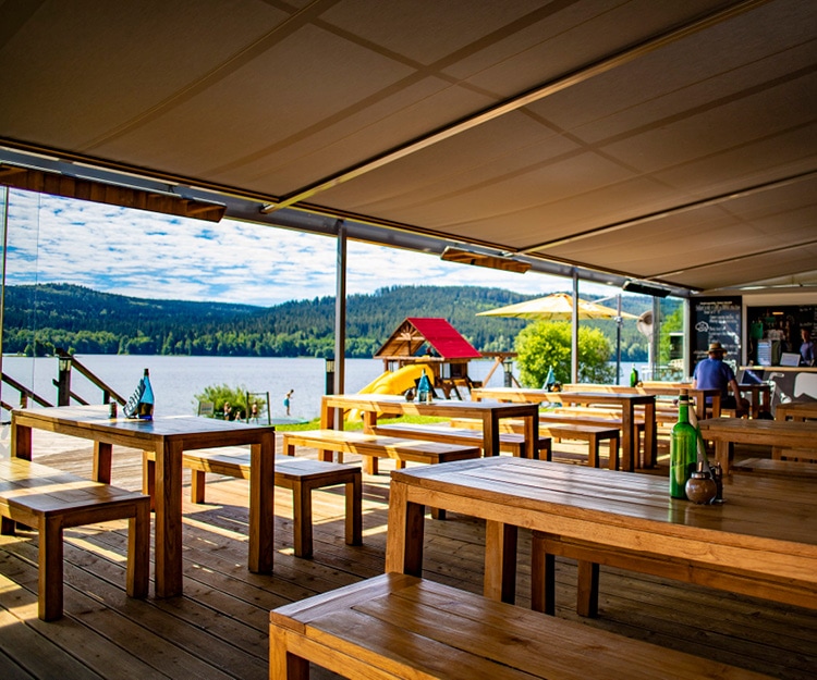 Nichtraucher-Restaurant mit Kamin, Bowling, Kinderecke und großer Außenterrasse mit Blick auf Lipno. Probieren Sie regionale Spezialitäten und frische Mittagsmenüs, aus lokalen Zutaten und nach jeweiliger Saison abgestimmt.